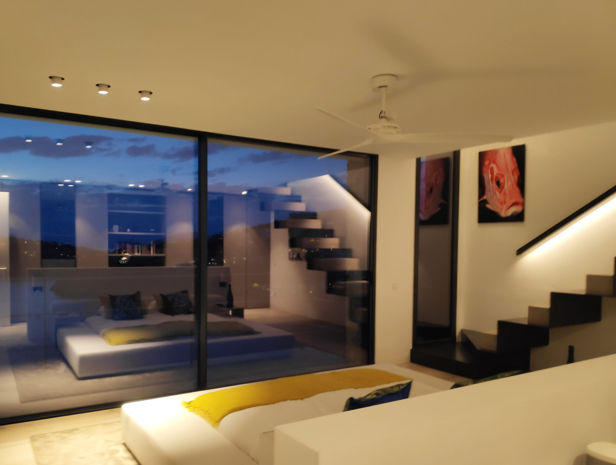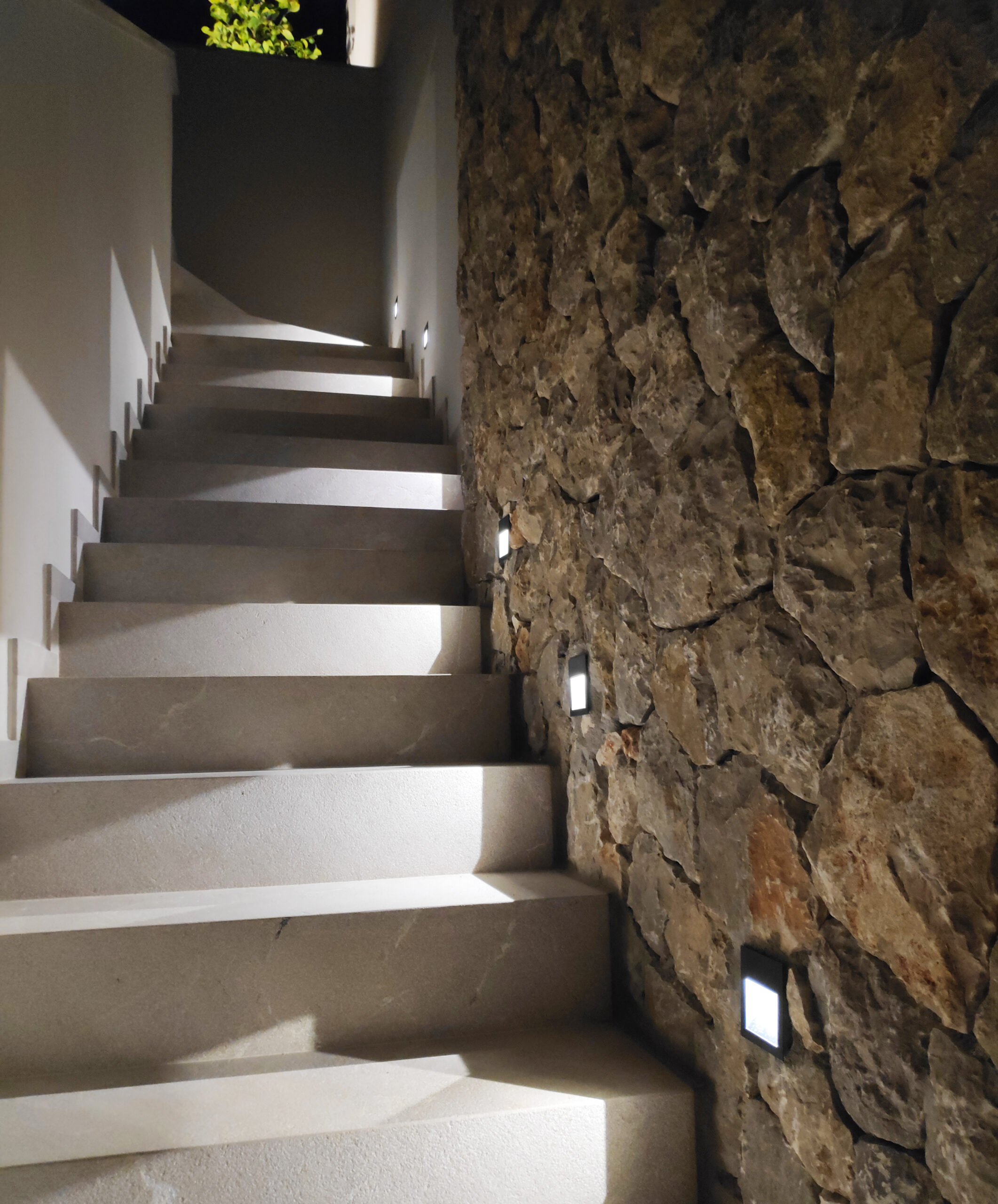 Beleuchtungsstudie für ein lustiges, romantisches und modernes Haus. Die Bewohner dieses Klippenhauses in Andratx lieben weiches, indirektes Licht.