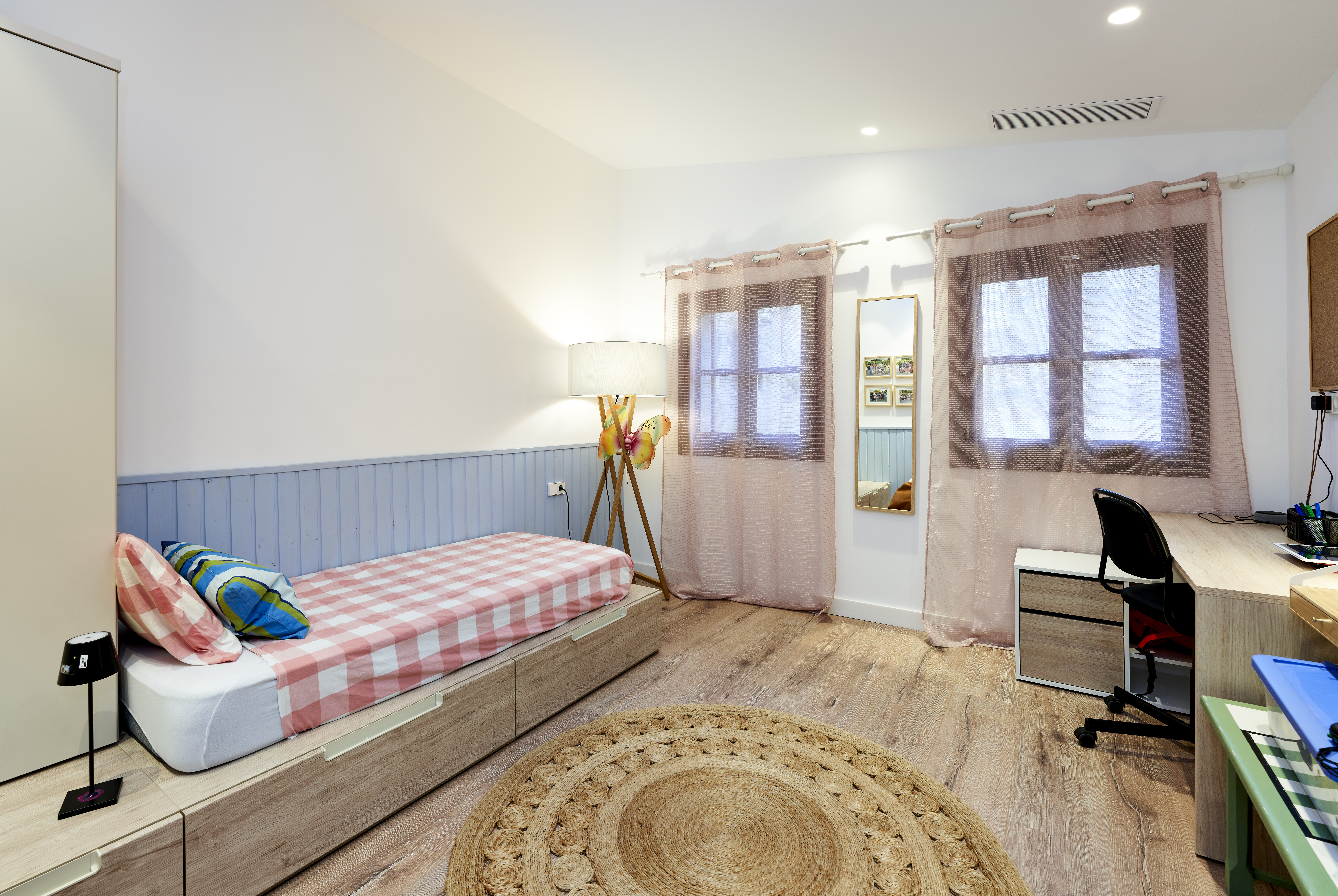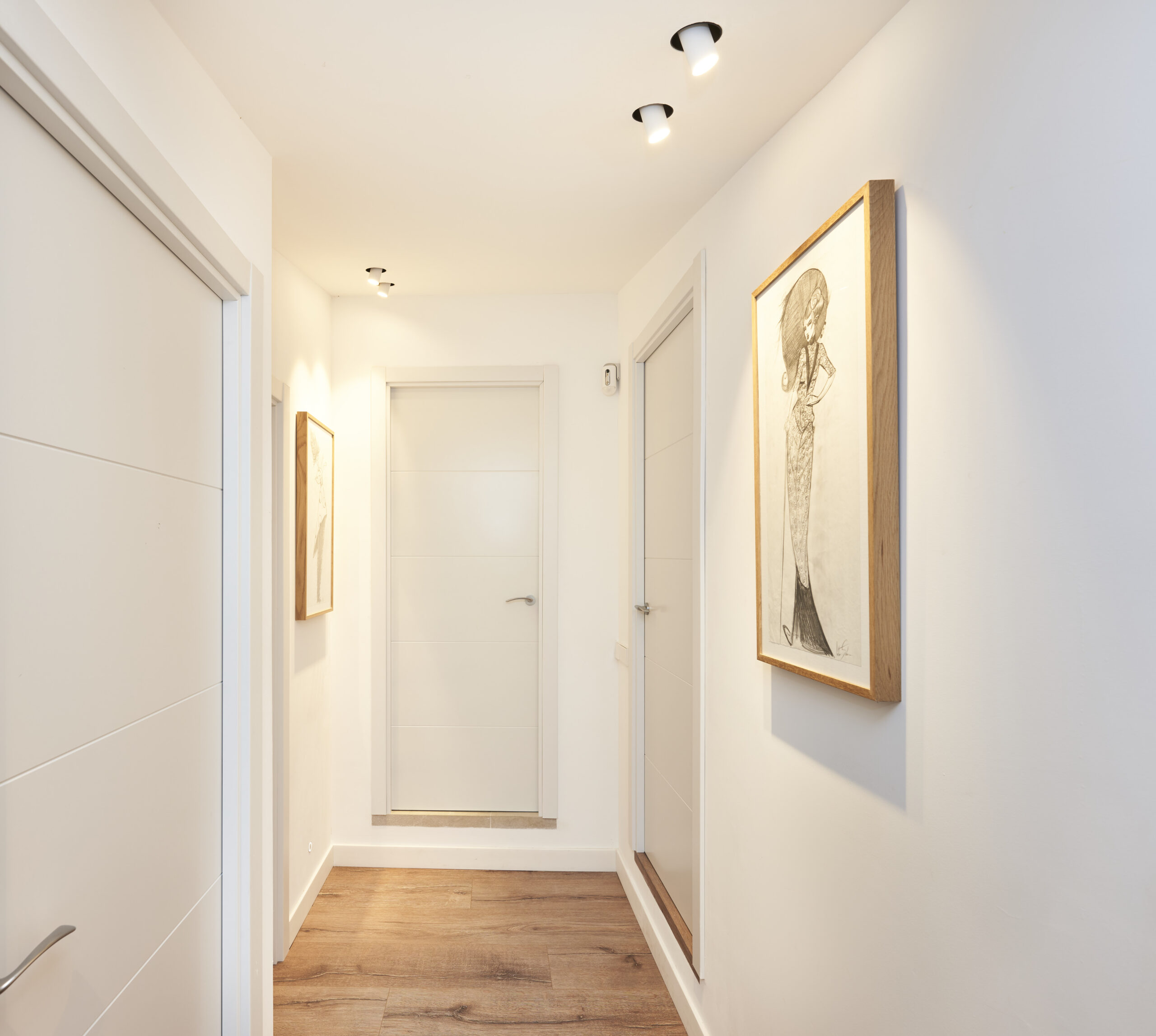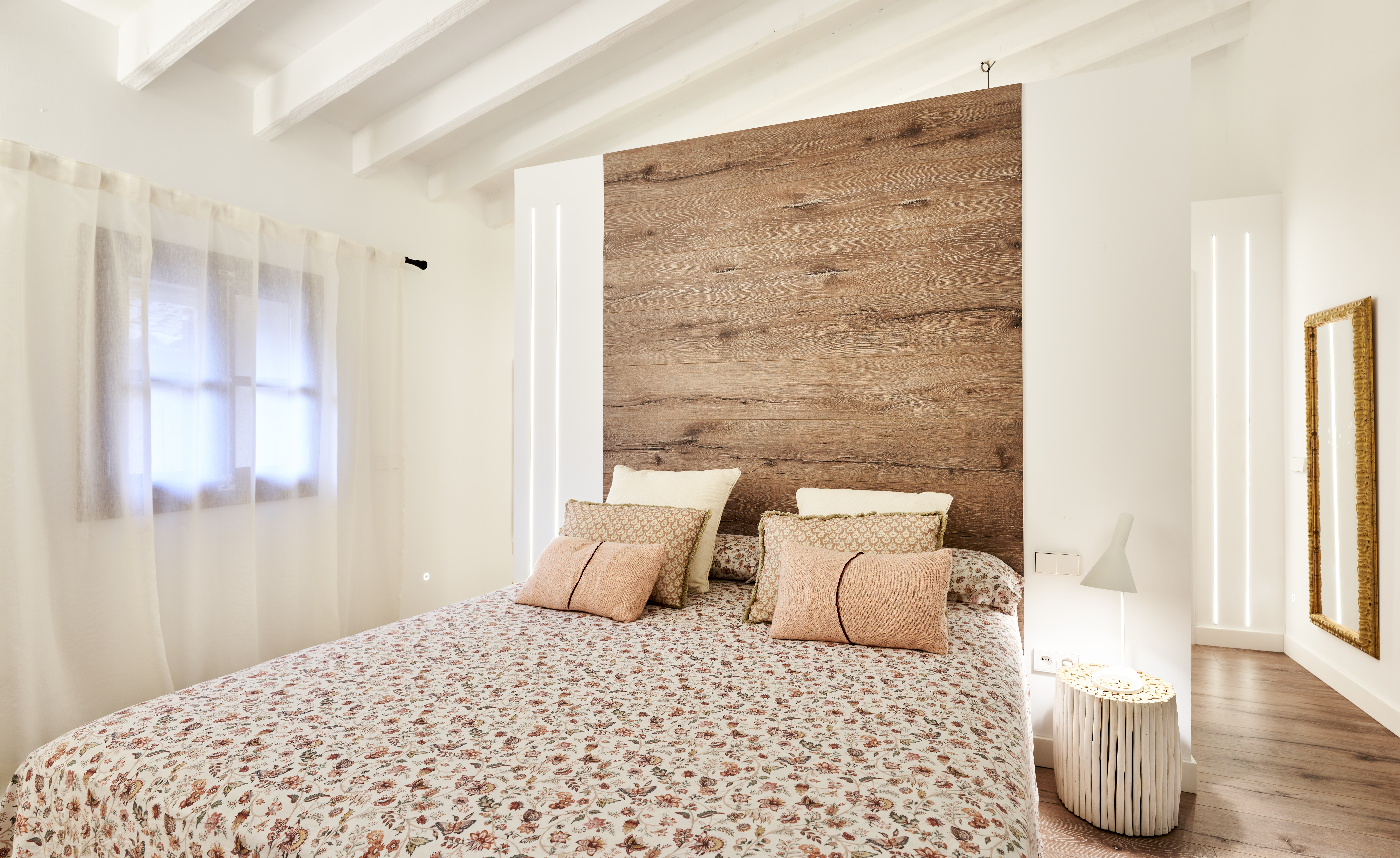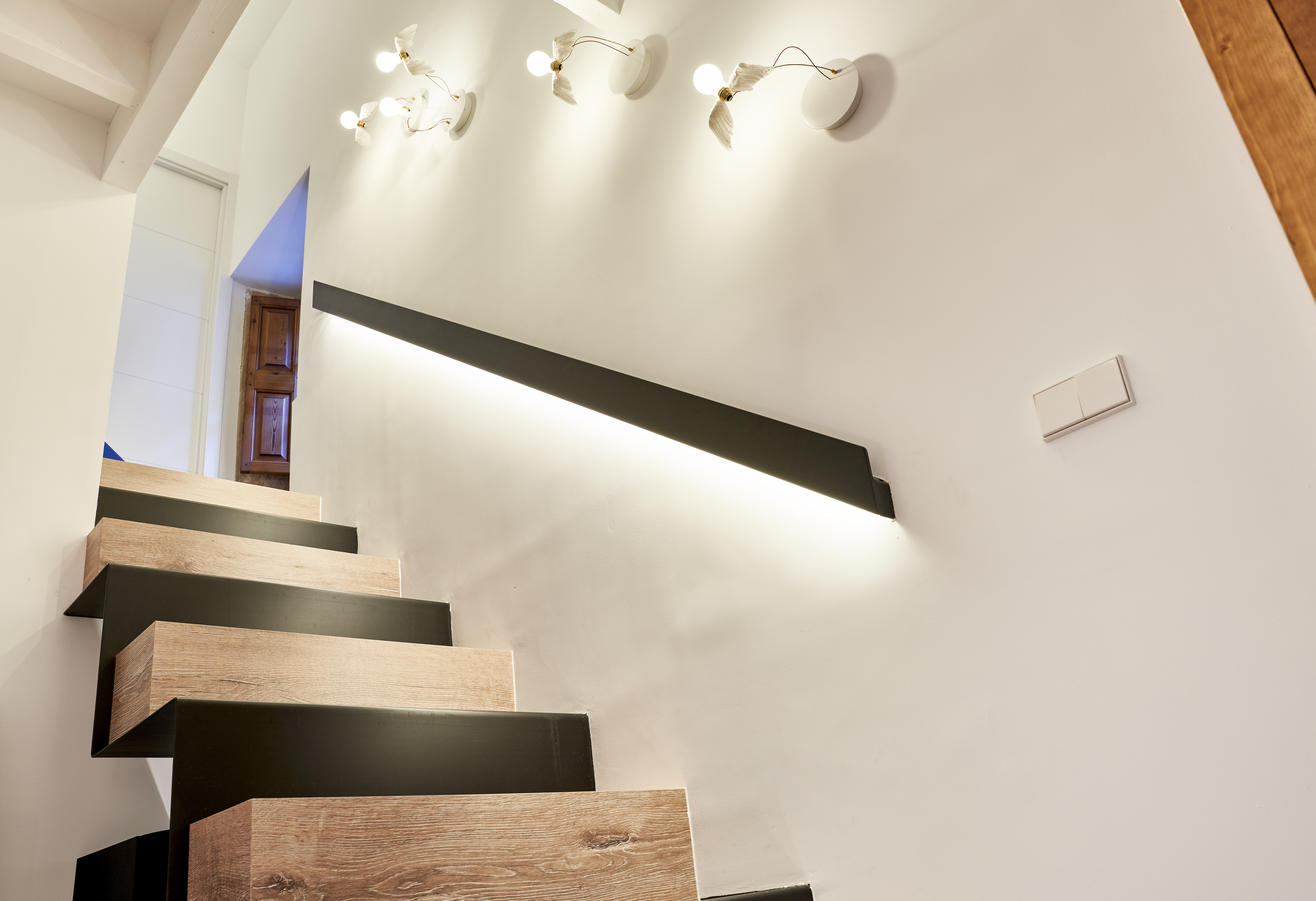 Ein mehr als 200 Jahre altes Haus im Zentrum des Dorfes mit einem rustikalen Charakter, in dem alte Elemente des Hauses kombiniert wurden, wobei einige Elemente wie die Balken beibehalten wurden, was uns dazu veranlasst hat, in einigen Räumen Flächenleuchten zu verwenden und sie mit anderen integrierten rahmenlosen Leuchten zu kombinieren. Es ist uns gelungen, den Charakter eines Dorfhauses zu bewahren, aber mit einer zeitgenössischen und modernen Ausstrahlung.