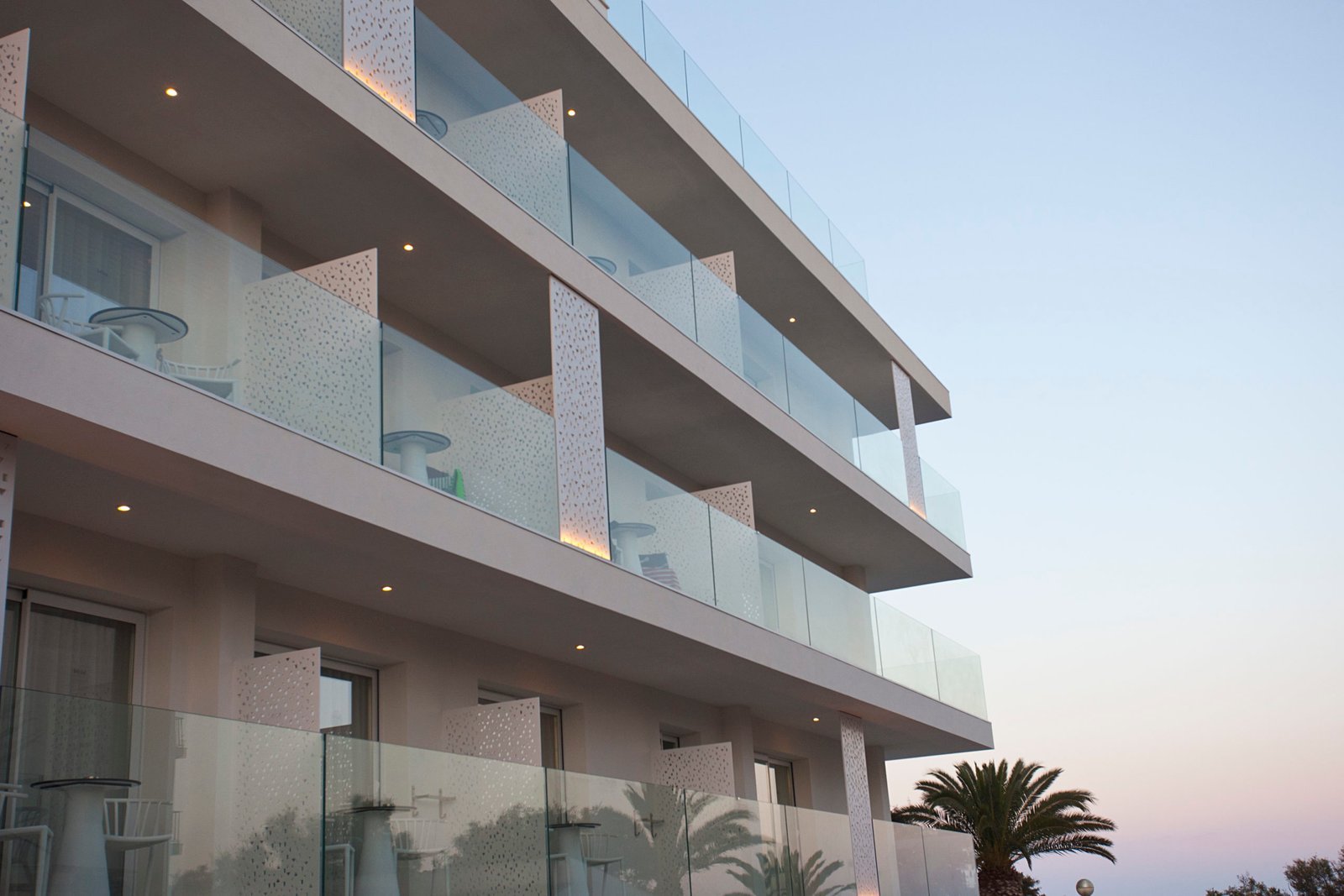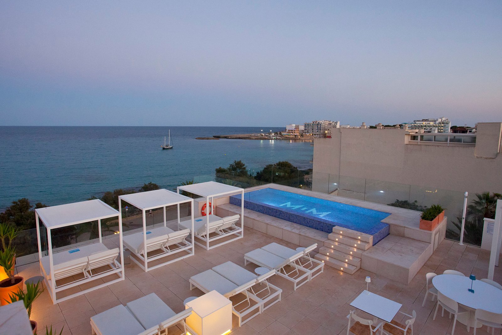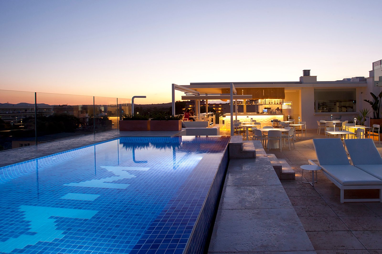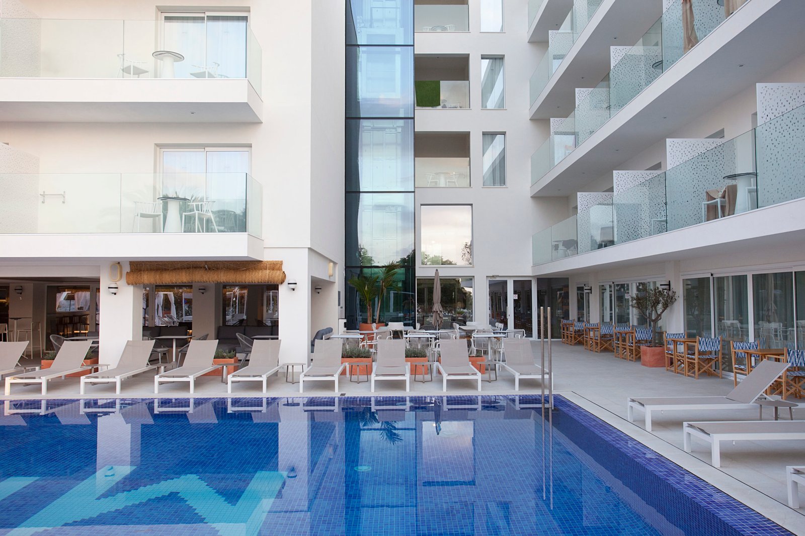 El Hotel cuenta 98 habitaciones, pool bar y porche en la zona de la piscina, un recién renovado SPA con todas las comodidades, gimnasio, zona de masaje y relajación, sauna, hammam, el top roof BAR FLY con piscina en la cubierta del bloque de 3 alturas y una terraza-solarium con vistas panorámicas al mar y al maravilloso paraje protegido de la Punta de n’Amer en la cubierta del bloque de 4 alturas, además de ascensor panorámico acristalado y muchos otros servicios que dotan de gran calidad al establecimiento.