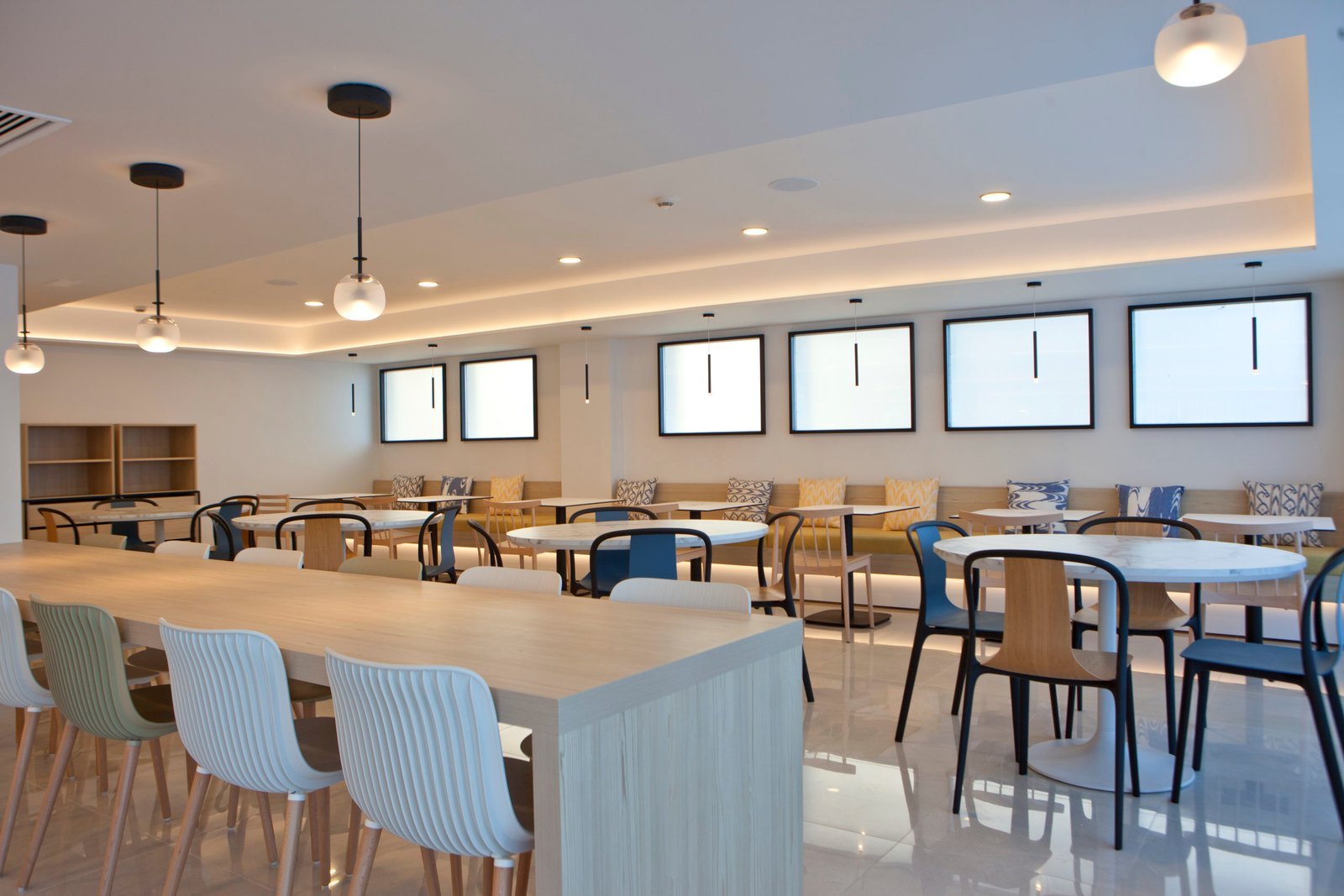 Como no, la iluminación está muy presente en el diseño del hotel, tanto en su interior, como premisa para la obtención del distintivo LEED como en su exterior, donde la iluminación de la fachada resalta un diseño actual y novedoso, icono de la zona.