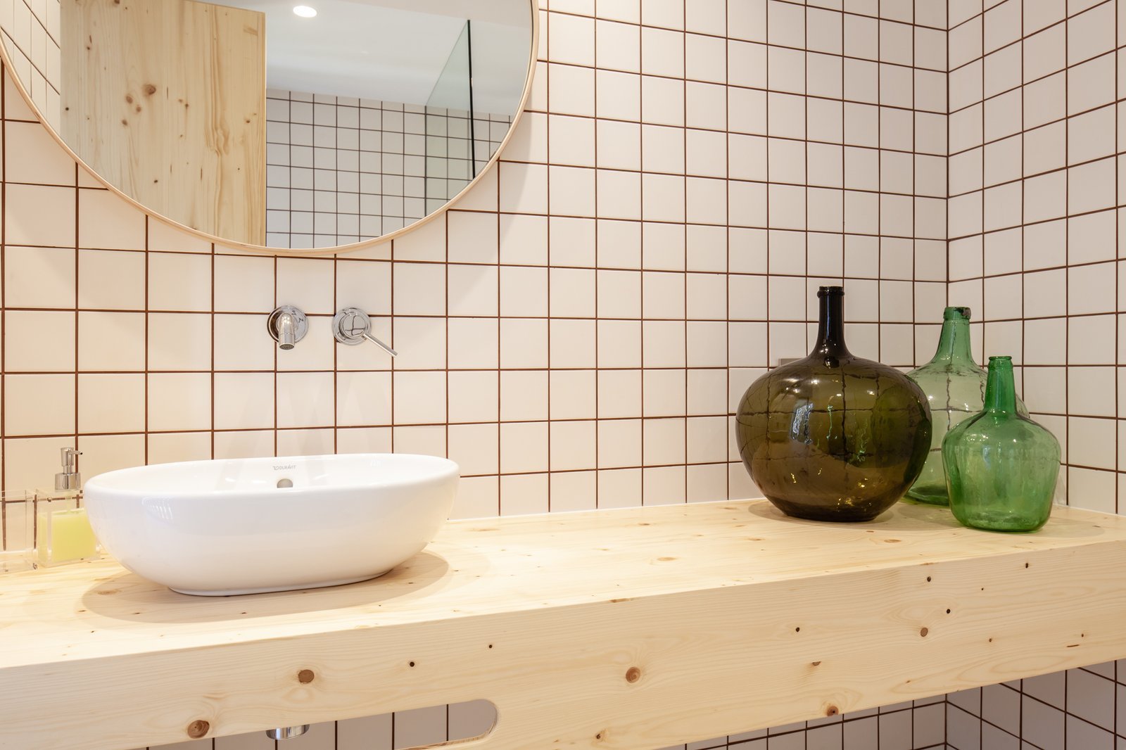 Los dormitorios y baños siguen la misma tónica. Pocas piezas para no cargar el espacio y juego de materiales naturales como son la piedra y la madera. En cuanto al color en el interior, se ha optado también por unos tonos neutros. Tanto en el color de las paredes como en los tonos de las maderas y los tejidos son completamente naturales, sin tintes ni tratamientos.