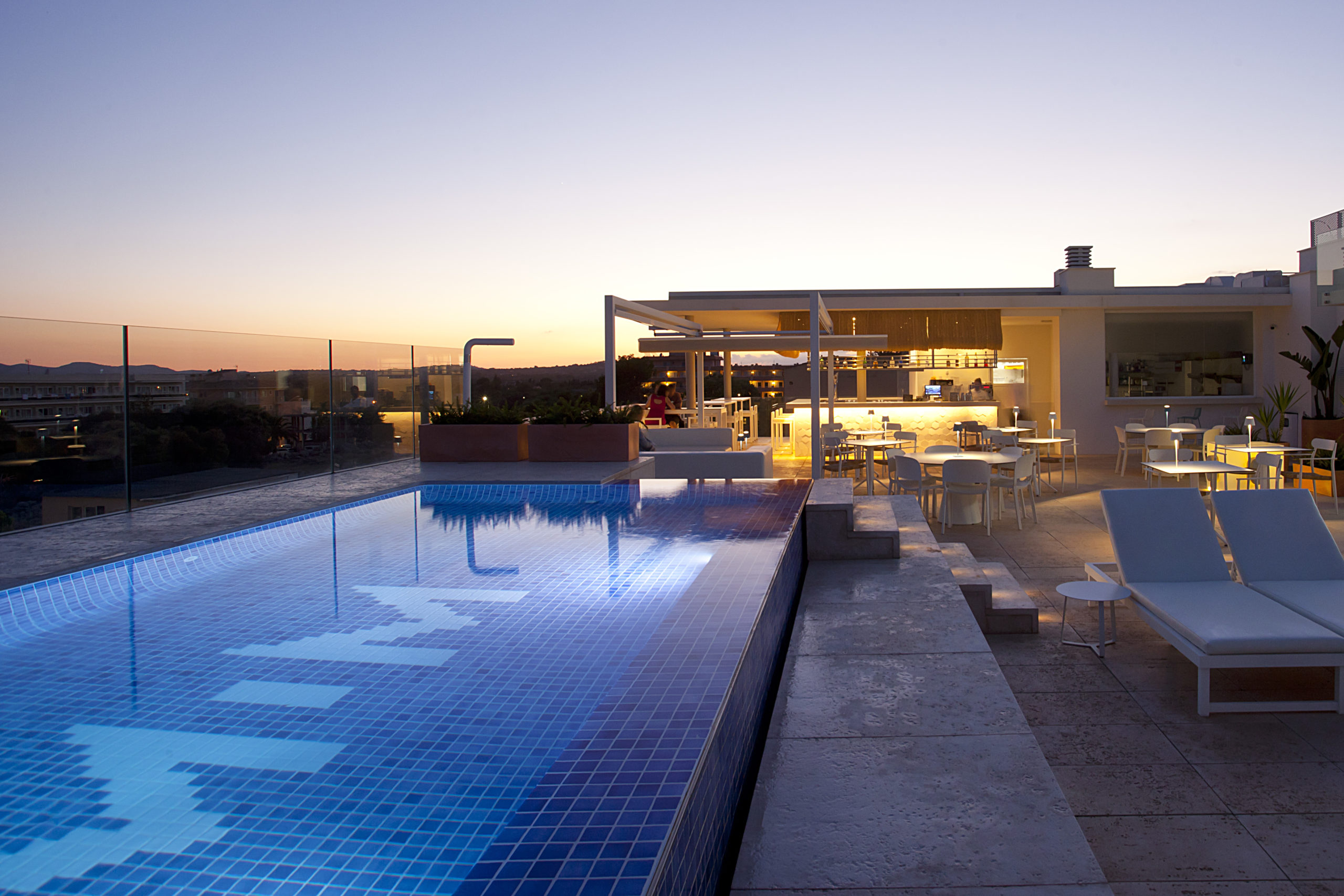 The Hotel has 98 rooms, pool bar and porch in the pool area, a newly renovated SPA with all the amenities, gym, massage and relaxation area, sauna, hammam, the top roof BAR FLY with pool on the roof of the block of 3 heights and a terrace-solarium with panoramic views of the sea and the wonderful protected area of Punta de n'Amer on the roof of the block of 4 heights, plus panoramic glass elevator and many other services that provide high quality to the establishment.