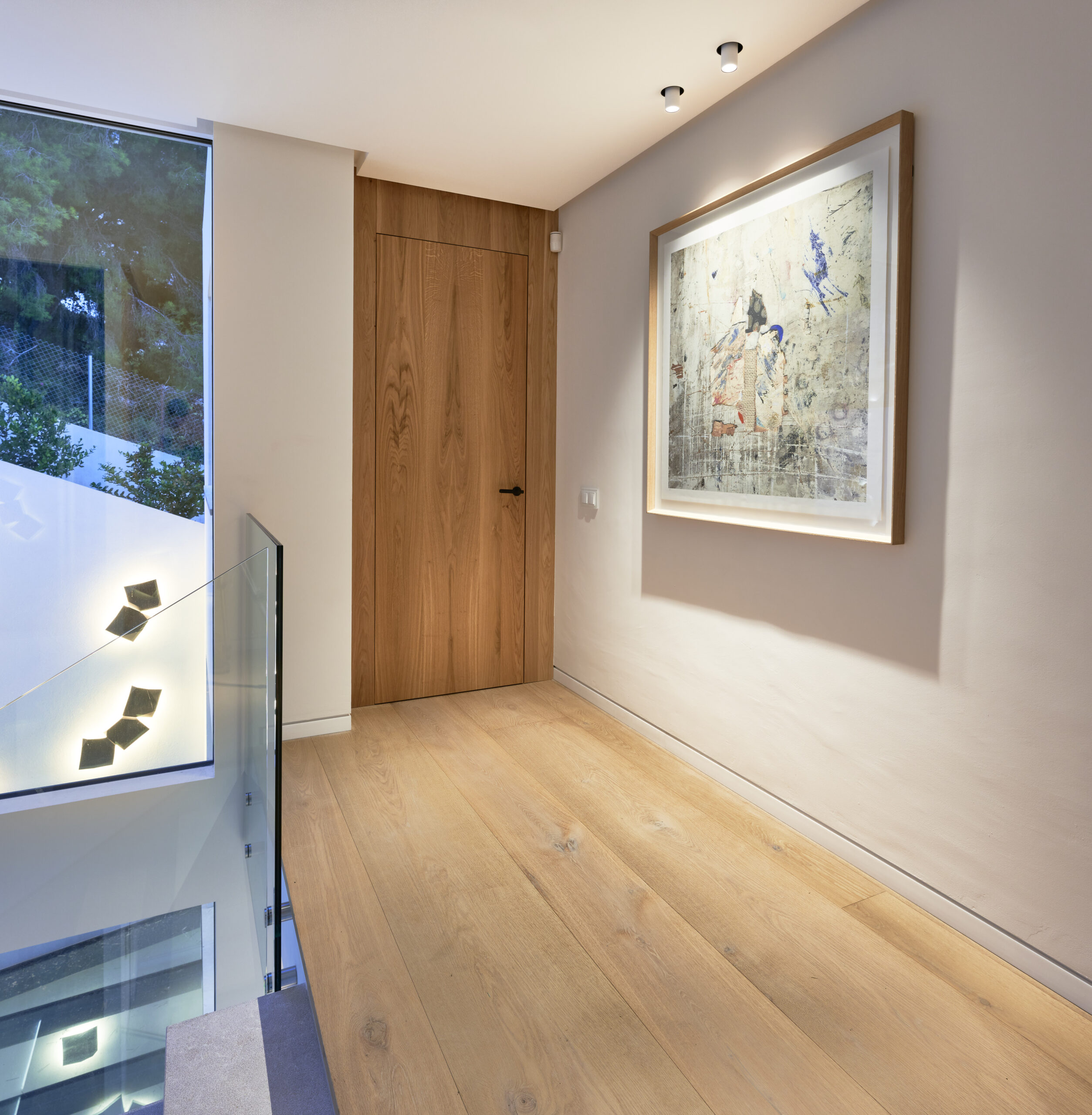It is a high standing house located in Bendinat Hill and as you can see it enjoys excellent sea views. Sober style and with excellent finishes where lighting has played an important role, creating atmospheres adapted to each space and with some decorative touches as in the access to the house, in the staircase or on the facade.