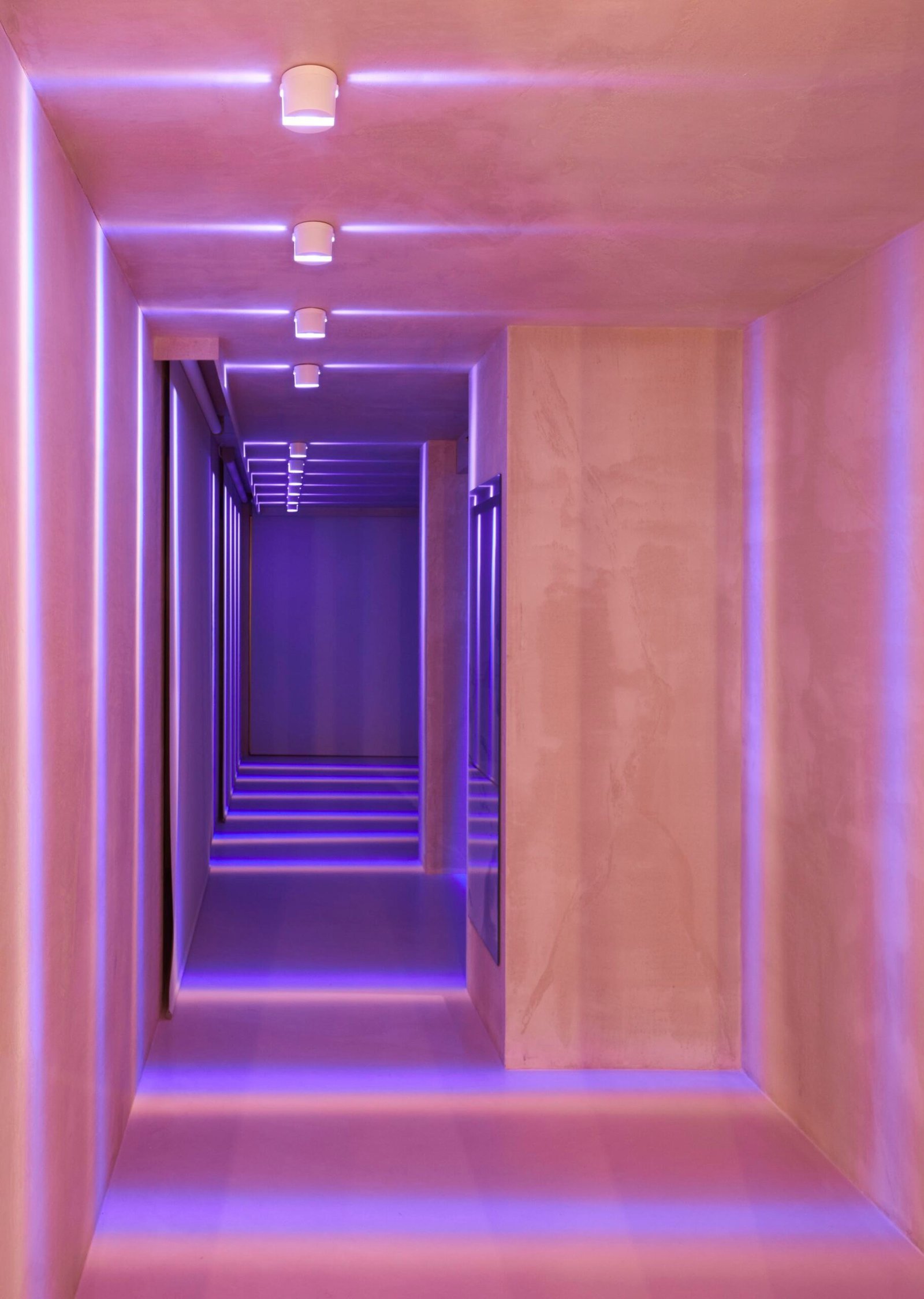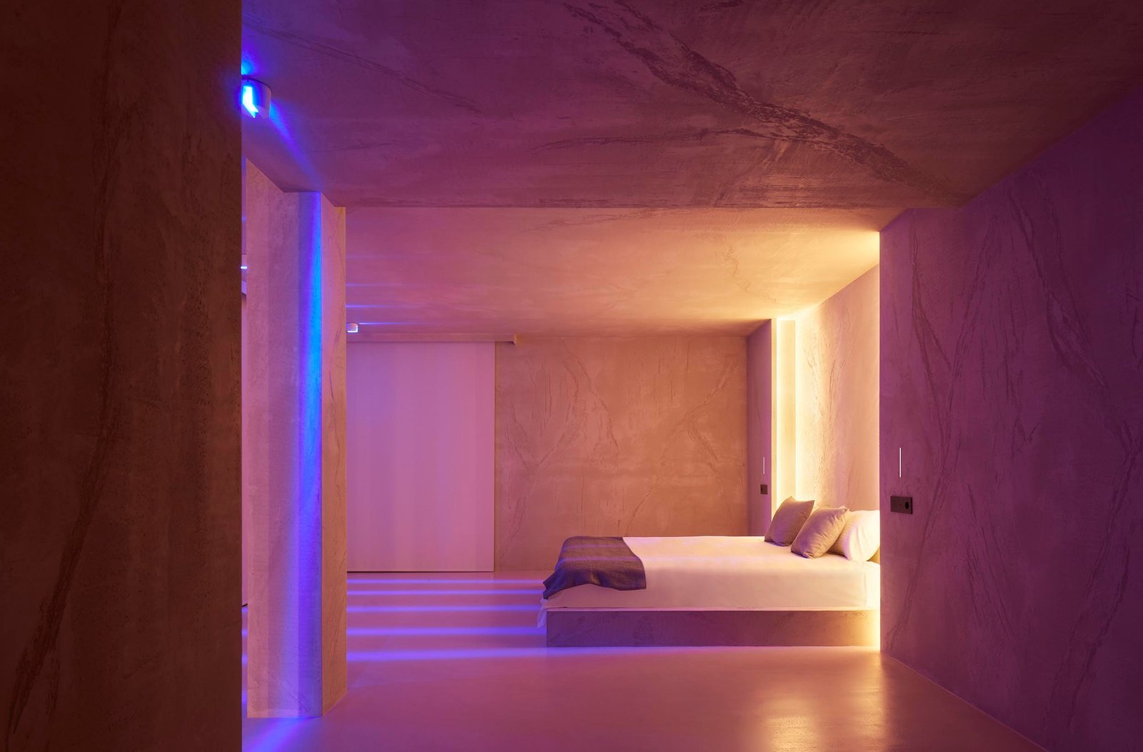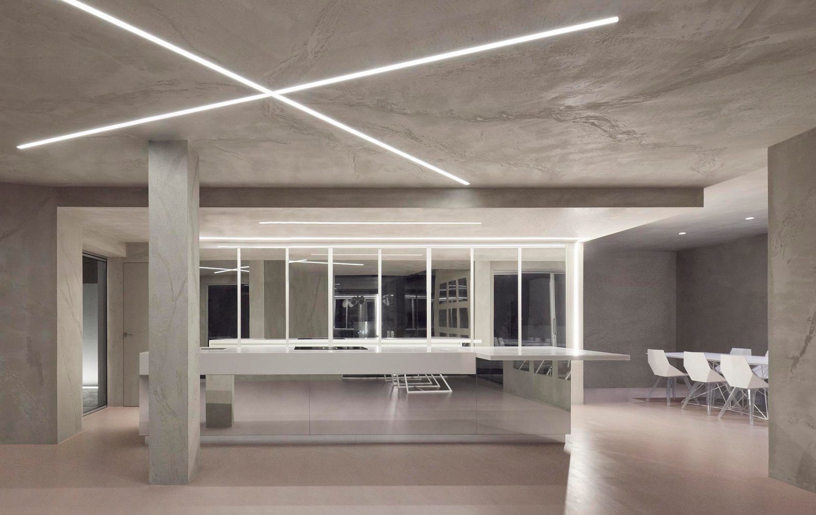 La influencia de la luz natural y el proyecto lumínico de esta vivienda, dotan de diferentes pieles a la misma estancia, avanzando de manera suave y pura con la luz natural, hasta llegar a cromáticas extremas, cambiando el carácter y aspecto de la vivienda a su antojo.