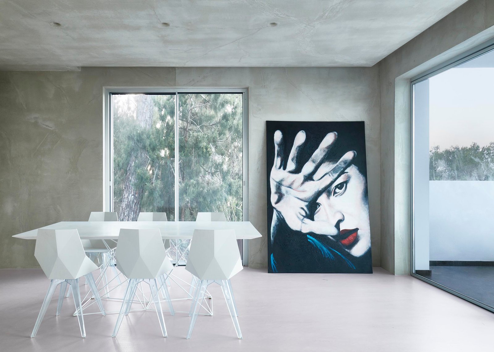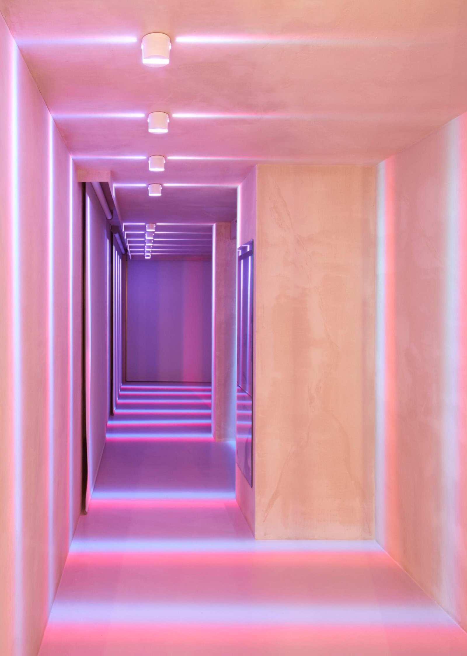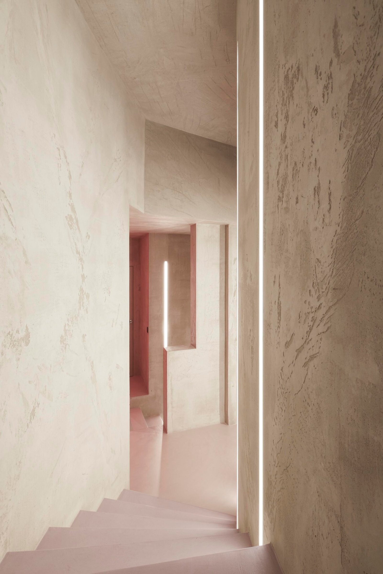 La influencia de la luz natural y el proyecto lumínico de esta vivienda, dotan de diferentes pieles a la misma estancia, avanzando de manera suave y pura con la luz natural, hasta llegar a cromáticas extremas, cambiando el carácter y aspecto de la vivienda a su antojo.