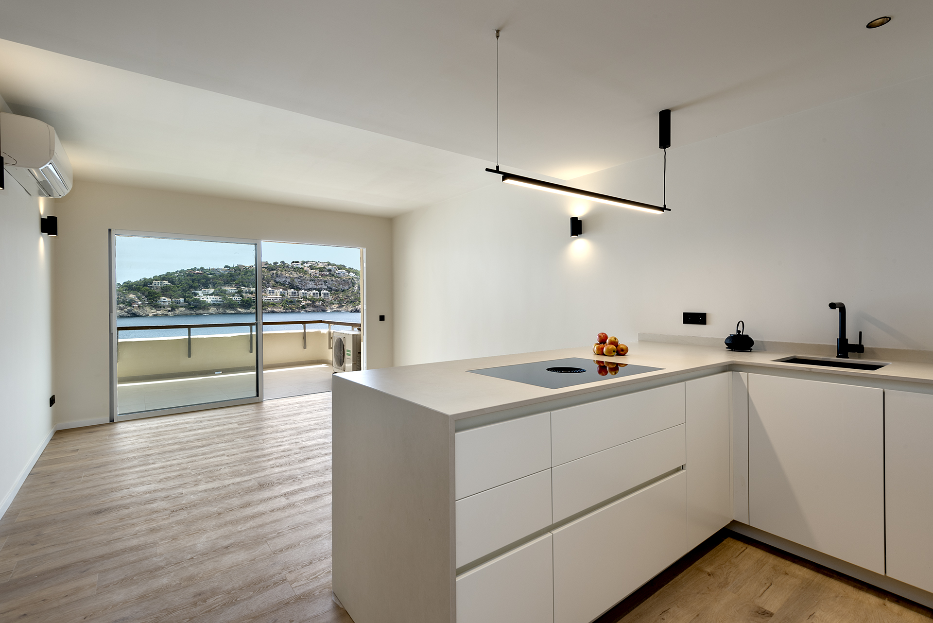 Proyecto de iluminación en apartamentos con vistas privilegiadas al mar mediterráneo. La luz natural de las Islas Baleares en combinación con la iluminación técnica y decorativa del estudio de Iluminación Worldlight.