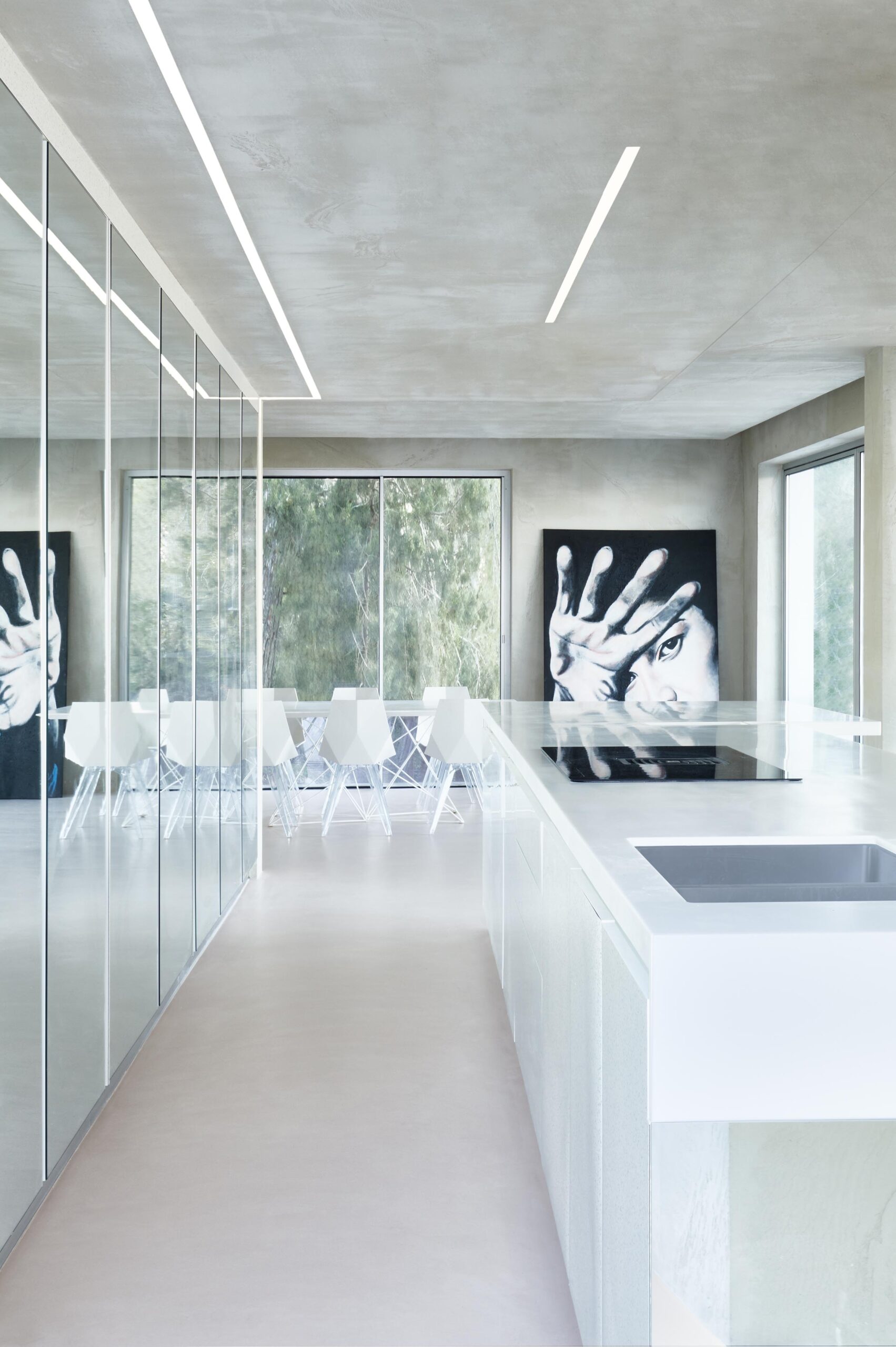 Esta Oda Lumínica no hubiese sido posible si no hubiéramos contado con uno de los mejores fabricantes. Deltalight nos ofrecía versatilidad y una gran gama de productos. Con Deltalight se nos abría la posibilidad de lineas de luz en el techo cruzadas entre sí. Teníamos que crear efectos espectaculares que fueran un poco con el estilo moderno y rompedor de la casa y el entorno festivo que significa estar ubicado en Ibiza. Tenían que ser lineas puras, las luces que se fundieran con los techos de cemento y causar efecto. Deltalight encajaba perfectamente con las necesidades de este proyecto.