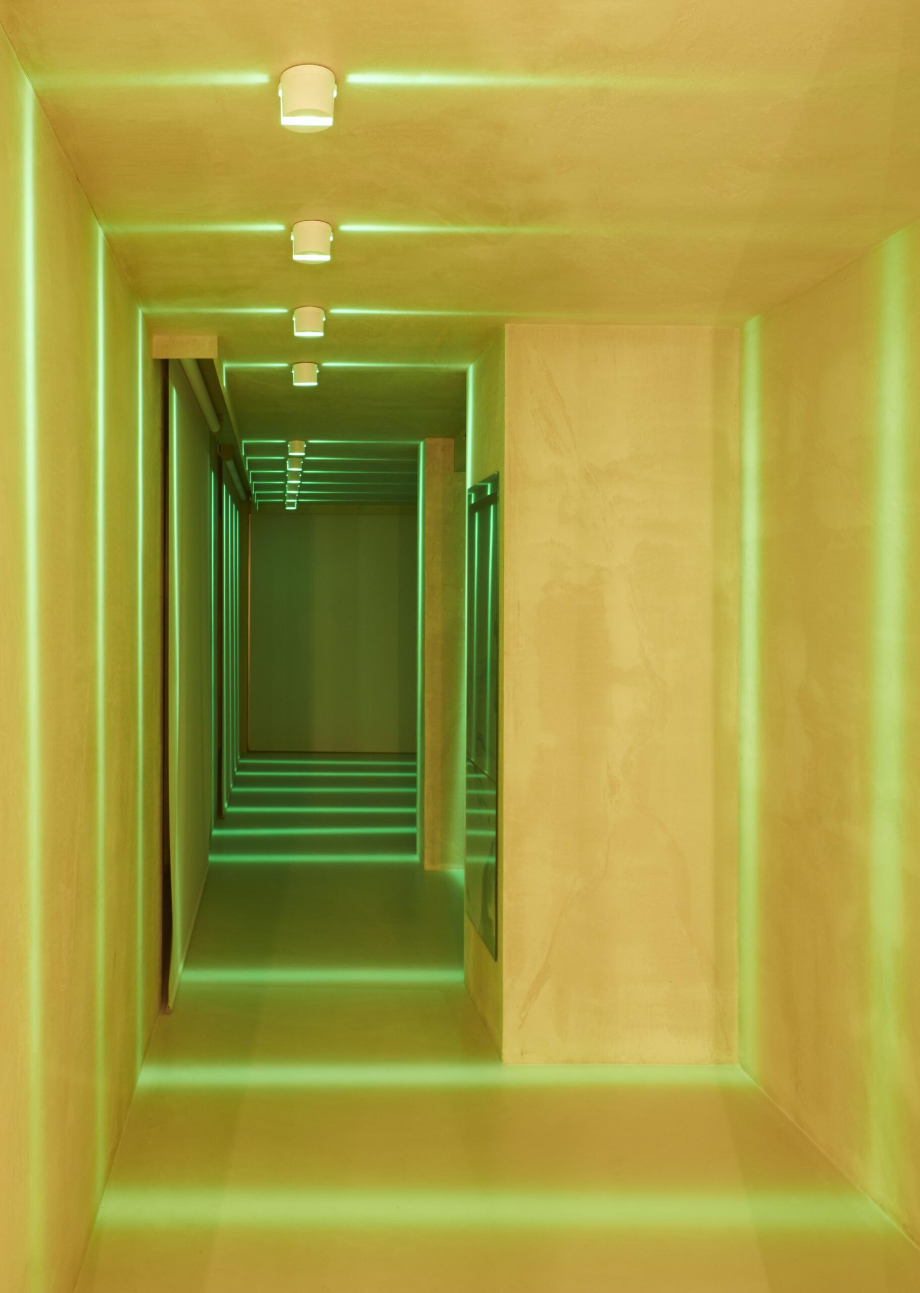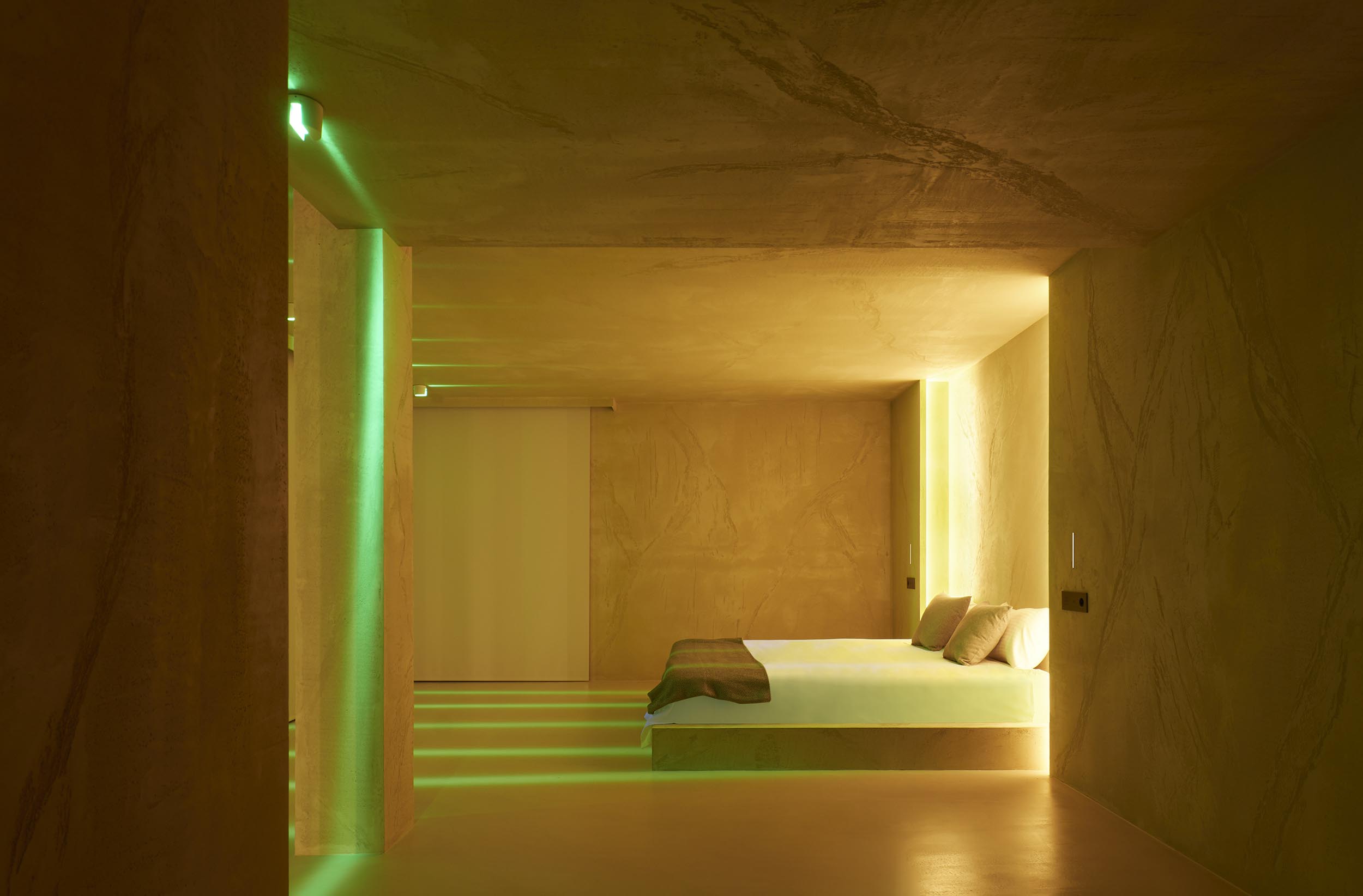 La influencia de la luz natural y el proyecto lumínico de esta vivienda, dotan de diferentes pieles a la misma estancia, avanzando de manera suave y pura con la luz natural, hasta llegar a cromáticas extremas, cambiando el carácter y aspecto de la vivienda a su antojo.