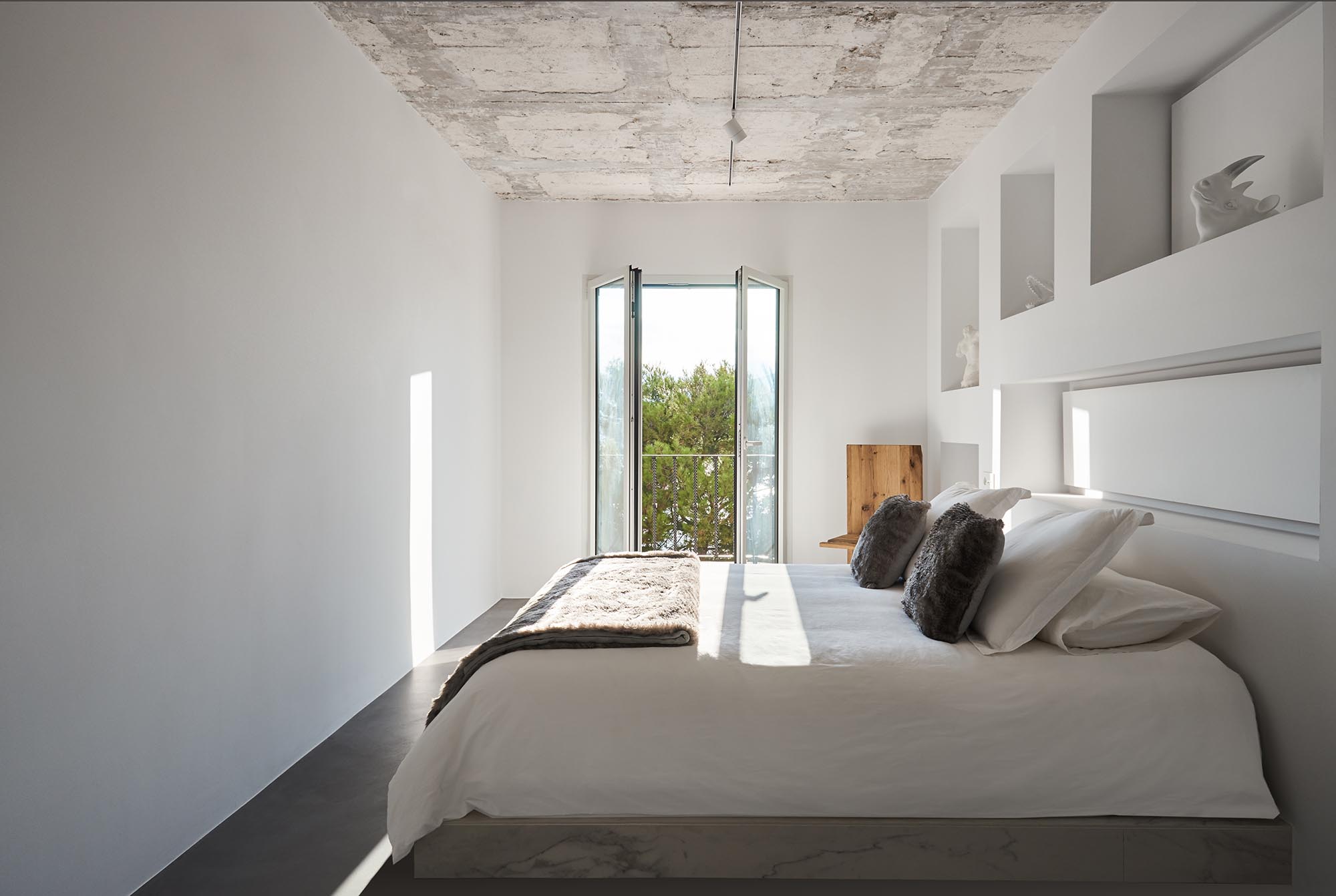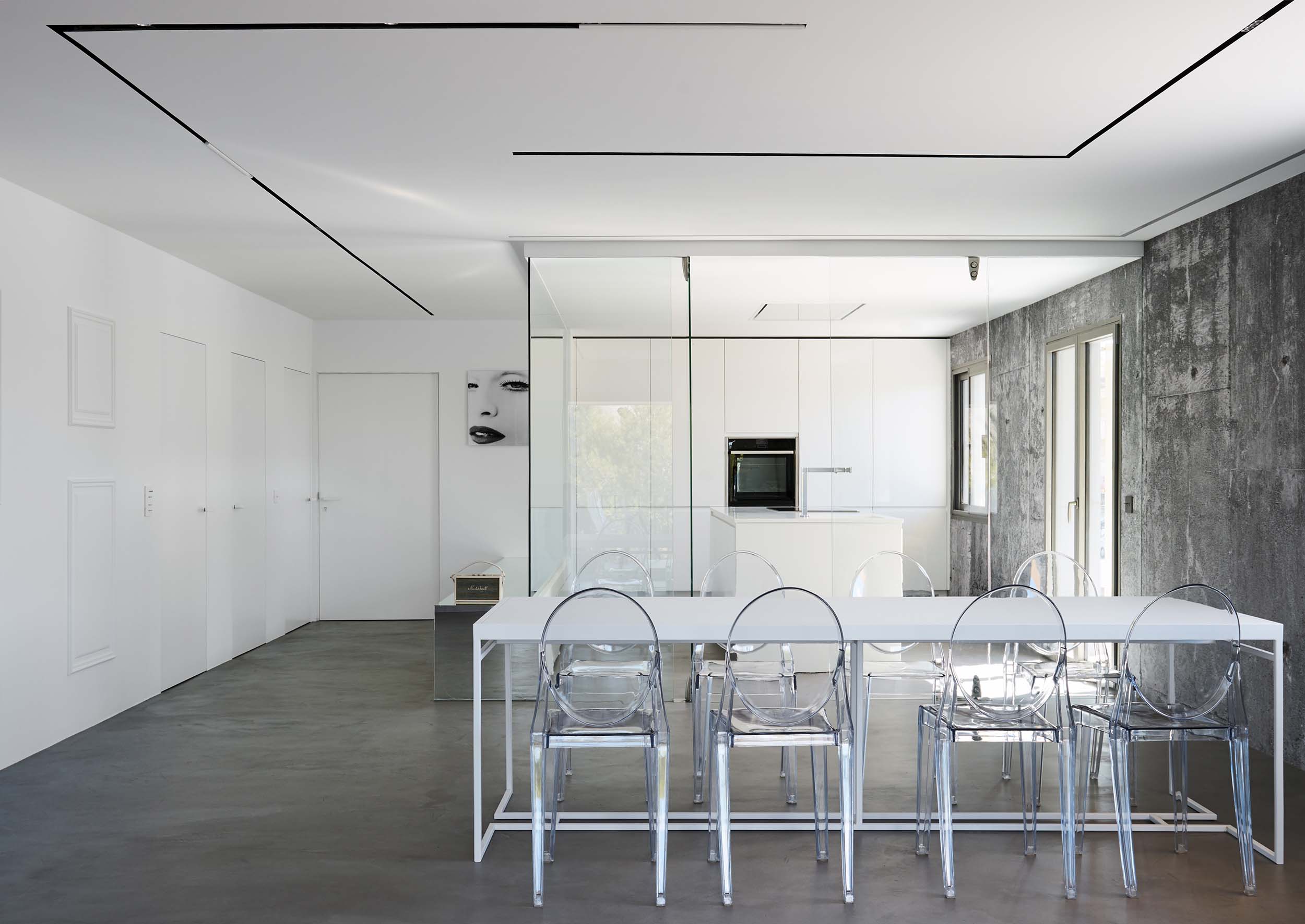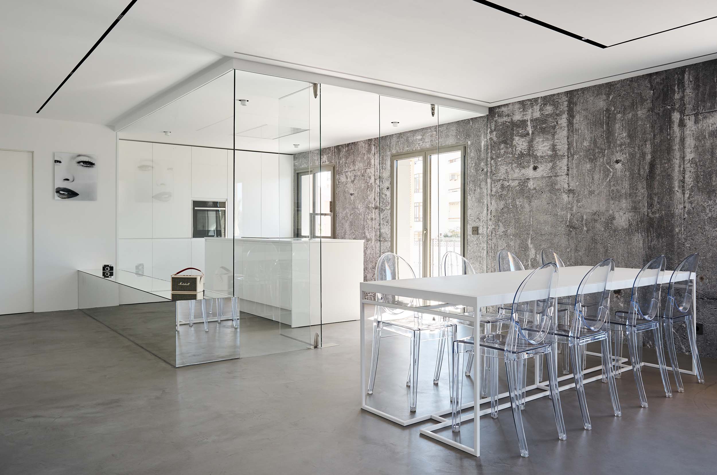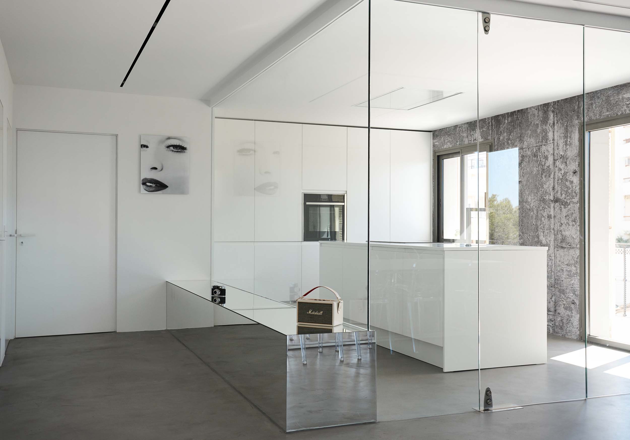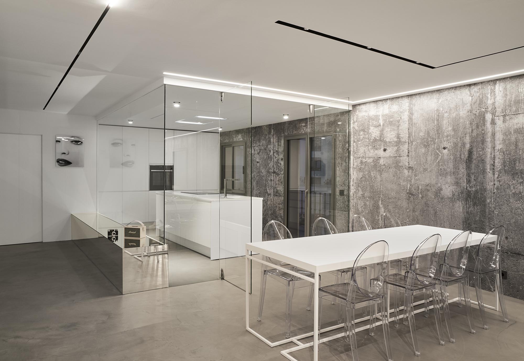 El objetivo primordial de la reforma era dotar a la vivienda de mayor amplitud y luminosidad en toda su superficie, por lo que se procedió a la demolición de gran parte de la tabiquería interior así como de todos los revestimientos, sanitarios y mobiliario existentes.La pulcritud del blanco y lo refinado del mármol contrastan con el brutalismo del techo desnudo, formando un ambiente único. Cada elemento, cada revestimiento, cada mecanismo, ha sido elegido con sumo cuidado, con el fin de obtener un equilibrio visual perfecto.