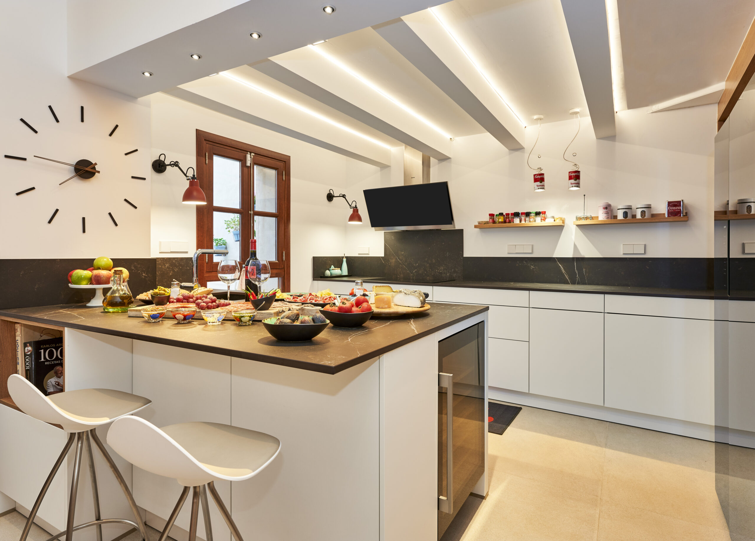 Hemos acudido a Deltalight para la iluminación técnica con focos y con algunos perfiles integrados en pared que consiguen un gran efecto visual. Destacaremos aqui las luminarias Diro trimless, Midispy y perfiles Tagline.