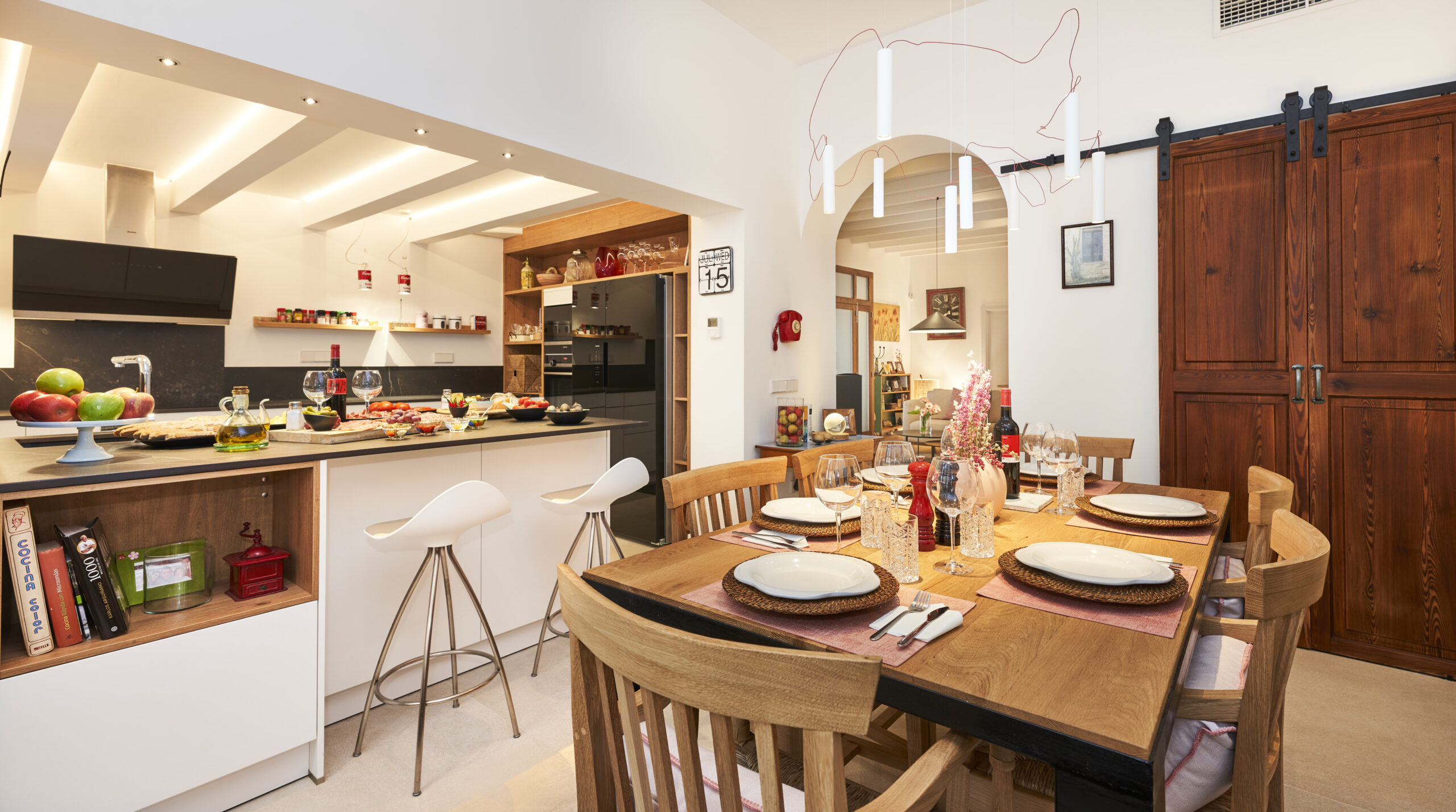 Una vivienda con más de 200 años en el centro del pueblo, de carácter rústico en la que se han combinado elementos antiguos de la vivienda manteniendo algunos elementos como las vigas, lo que nos ha hecho ir a lámparas de superficie en algunos espacios, combinandolas con otras luminarias integradas sin marco. Se ha conseguido conservar el carácter de casa de pueblo pero con un aire contemporáneo y moderno.